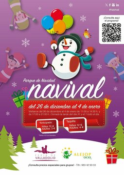 El parque de navidad infantil abrirá sus puertas el 26 de diciembre con una extensa oferta de ocio para niños durante las vacaciones escolares con atracciones y actividades de carácter lúdico y formativo. Navival está organizado por Feria de Valladolid y la empresa Alejop Ocio, especializada en atracciones, hinchables y eventos.